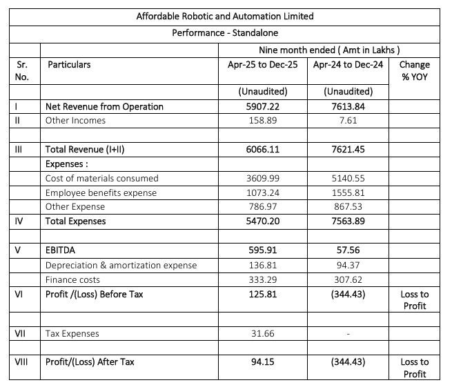 Financial Highlights – Standalone (April -25 to Dec-25)