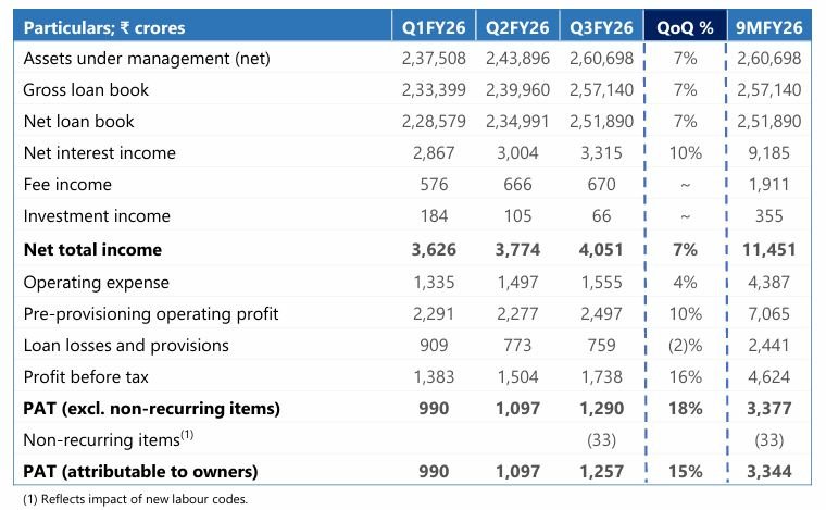 ➢Net total income grew by 33% YoY to ₹ 3,594 crore in Q3FY26 from ₹ 2,711 crore in Q3FY25.