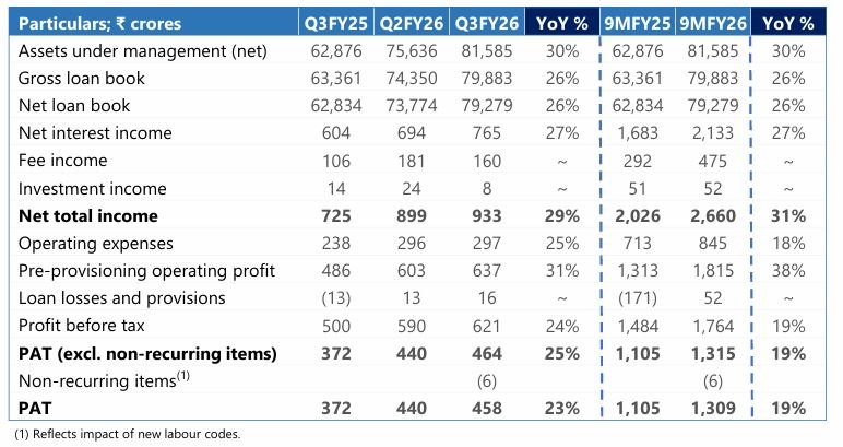➢ Net total income increased by 29% YoY in Q3FY26 to ₹ 933 crore from ₹ 725 crore in Q3FY25.