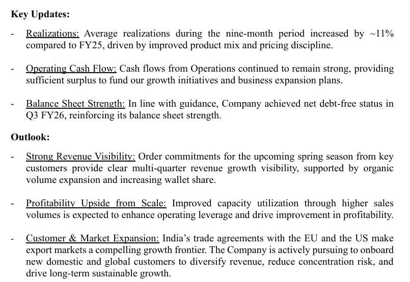At Bella Casa, our focus is clear: scaling the business and strengthening return ratios. True to this focus, our capex to double production capacity and acquire new land parcels for future expansion, all funded entirely through internal accruals, has laid the foundation for the next 5 years of sustainable growth. Incremental profitability from these assets is expected to enhance return ratios and create higher value for our shareholders.