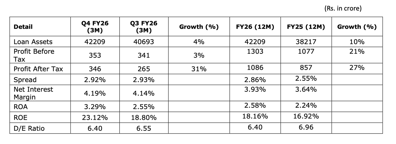 Loan disbursements for the twelve months ended March 31, 2026, stood at Rs.10531 crores compared to Rs.8568 crores in the corresponding previous period, reflecting a 23% growth Year on-Year (Y-o-Y).
