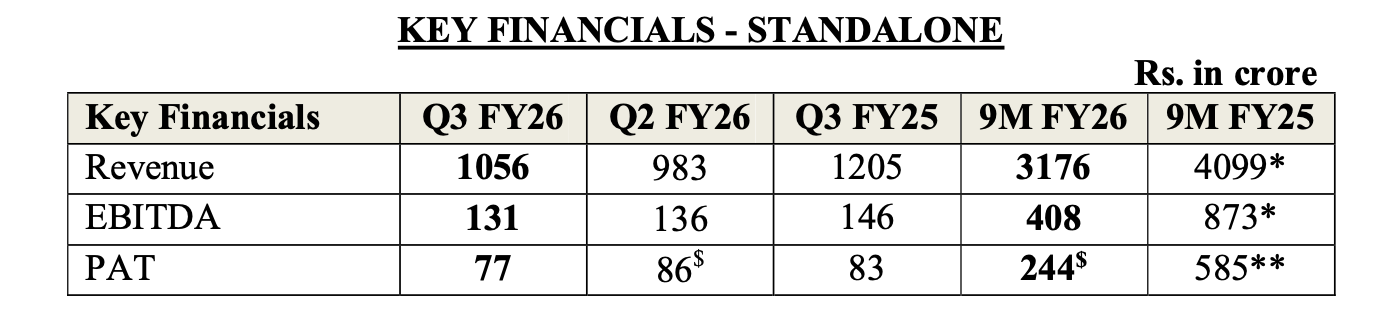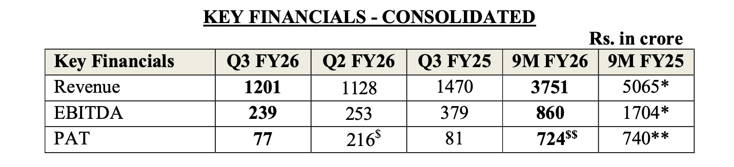 $ Includes gain of Rs. 152 crore net of tax on account of monetization of 1 HAM Assets in Q2FY26. $$ Includes gain of Rs. 430 crore net of tax on account of monetization of 11 HAM Assets in H1Y26.