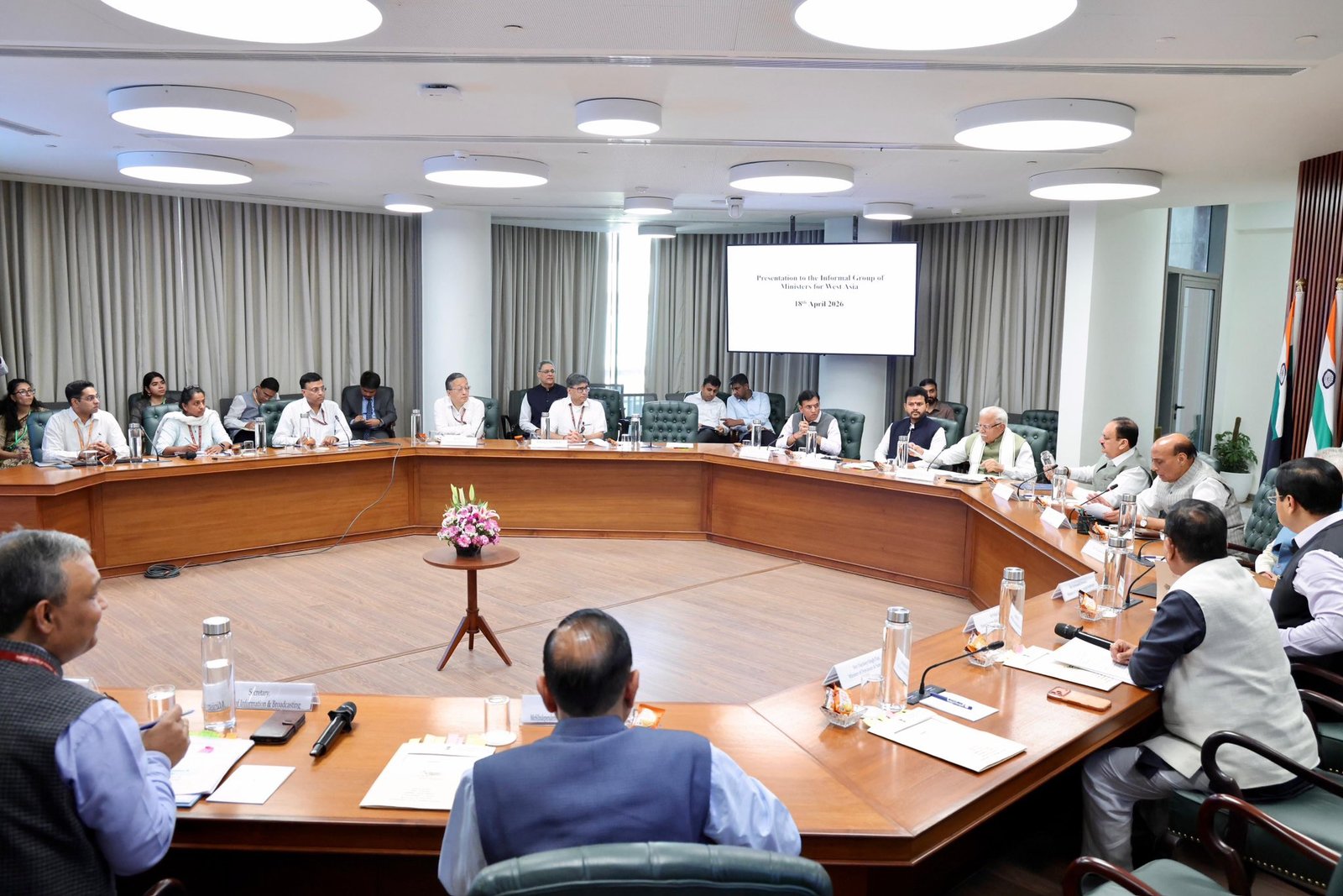 New Delhi: The Informal Group of Ministers (IGoM), headed by Raksha Mantri (Defence Minister) Rajnath Singh, reviewed the current situation in West Asia and discussed India’s preparedness as well as the future course of action during its fourth meeting at Kartavya Bhawan-2, New Delhi on April 18, 2026. Minister of External Affairs Dr S Jaishankar; Minister of Chemicals & Fertilizers Jagat Prakash Nadda; Minister of Petroleum and Natural Gas Hardeep Singh Puri; Minister of Consumer Affairs, Food and Public Distribution Prahlad Joshi; Minister of Civil Aviation Kinjarapu Rammohan Naidu; Minister of Ports, Shipping and Waterways Sarbananda Sonowal; Minister of Power Manohar Lal; Minister of Labour and Employment, Youth Affairs & Sports Dr Mansukh Mandaviya; and Minister of State (Independent Charge) of the Ministry of Science & Technology Dr Jitendra Singh attended the meeting.