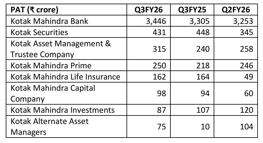The Bank’s PAT for Q3FY26 increased to ₹ 3,446 crore, up 4% YoY from ₹ 3,305 crore in Q3FY25 (up 6% QoQ from ₹ 3,253 crore in Q2FY26).