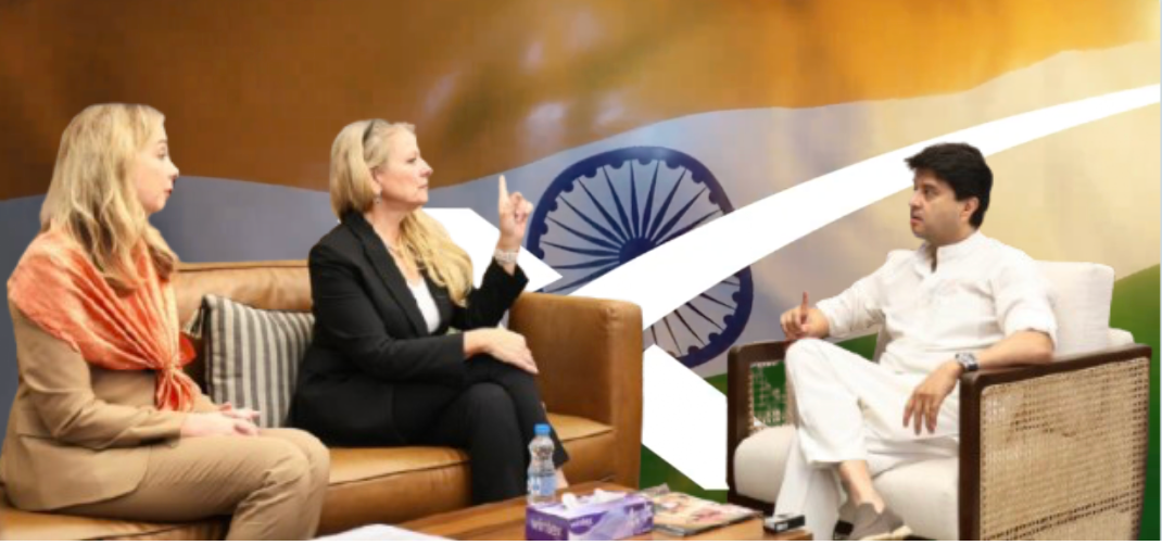 Jyotiraditya M. Scindia informed on X, “It was a pleasure to meet Ms. Gwynne Shotwell, President & COO, @SpaceX, Ms. Lauren Dreyer, Vice President, Global Business, @Starlink and the India leadership team today.”
