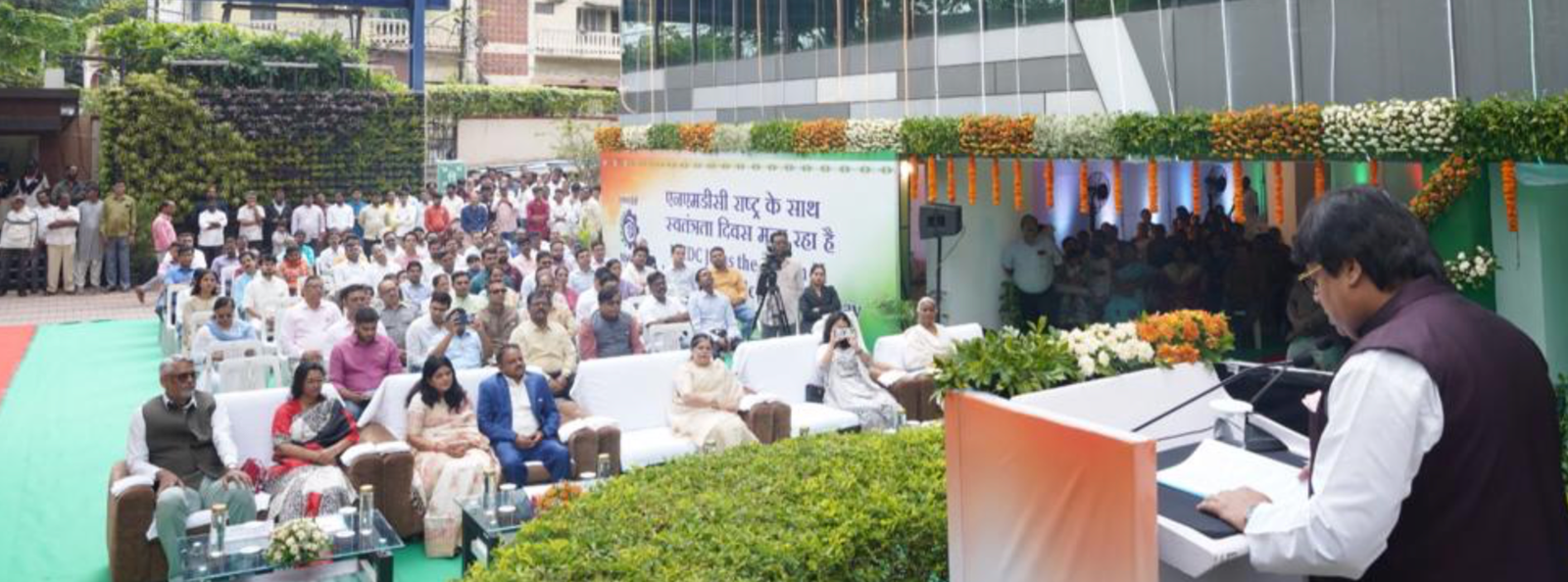 Amitava Mukherjee CMD, NMDC unfurled the national flag at the NMDC Corporate Office in Hyderabad in the presence of functional directors. The event was graced by Shri Vinay Kumar Director (Technical), Shri Joydeep Dasgupta, Director (Production), Smt. Priyadarshini Gaddam Director (HR) & Director Finance (Addl. Charge) along with employees and their family members.