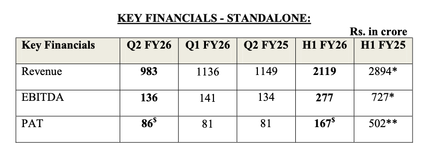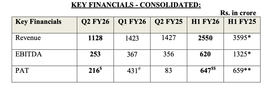 # Includes gain of Rs. 278 crore net of tax on account of monetization of 10 HAM Assets in Q1FY26. $ Includes gain of Rs. 152 crore net of tax on account of monetization of 1 HAM Assets in Q2FY26. $$ Includes gain of Rs. 430 crore net of tax on account of monetization of 11 HAM Assets in H1Y26.