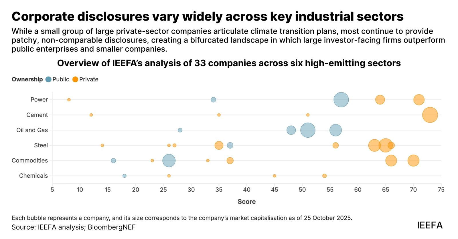 IEEFA’s report examines transition planning practices across India’s corporate sector through a comprehensive assessment of 33 companies operating in six high-emitting sectors — power, steel, cement, chemicals, commodities, and oil and gas.