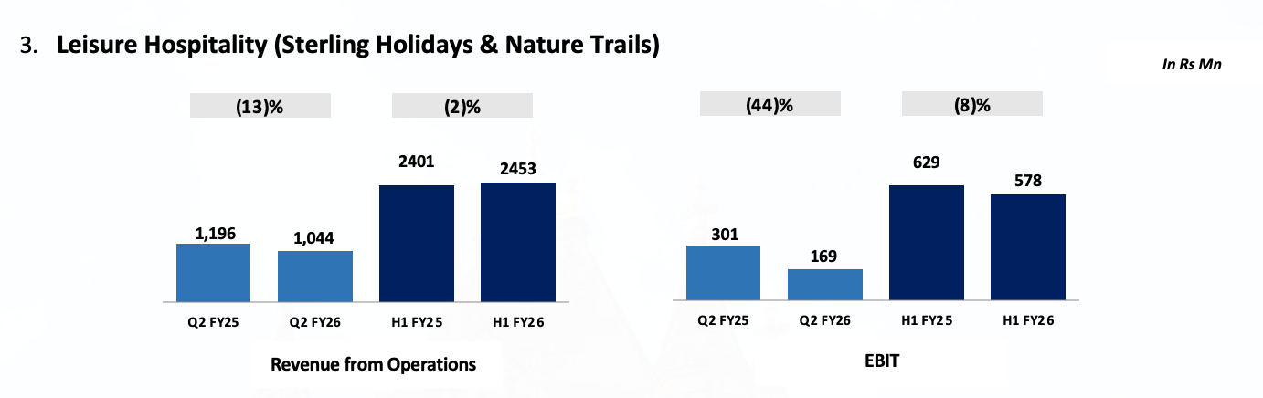 - Resort Network: Added 7 new Sterling Holiday Resorts across 7 locations in Q2 FY26. The total network (including Nature Trails) stands at 69 properties with 3506 rooms