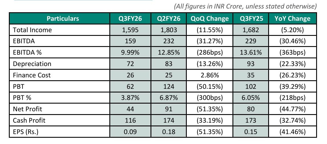 - Net Debt stands at INR 815 Crore on Dec 31, 2025 as compared to INR 847 Crore as on Sep 30, 2025, a reduction of 32 Crore.