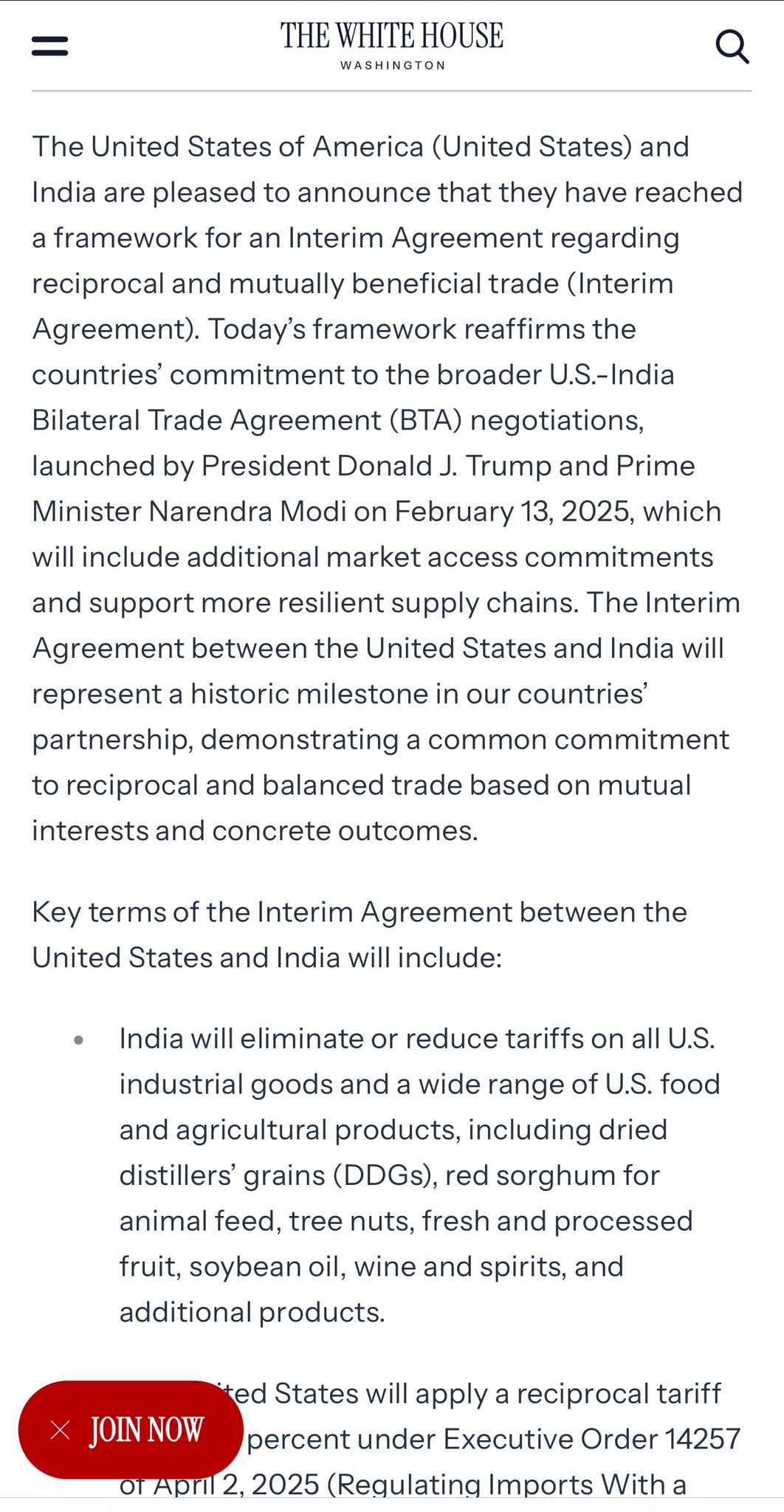 Prime Minister Narendra Modi calls it ‘Great news for India and USA!’ He writes on X, “This framework reflects the growing depth, trust and dynamism of our partnership. It strengthens ‘Make in India’ by opening new opportunities for India’s hardworking farmers, entrepreneurs, MSMEs, StartUp innovators, fishermen and more. It will generate large-scale employment for women and youngsters. ”